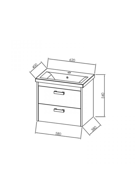 Inaltimea ansamblului mobilier+lavoar: 54 cm (vezi schita tehnica)