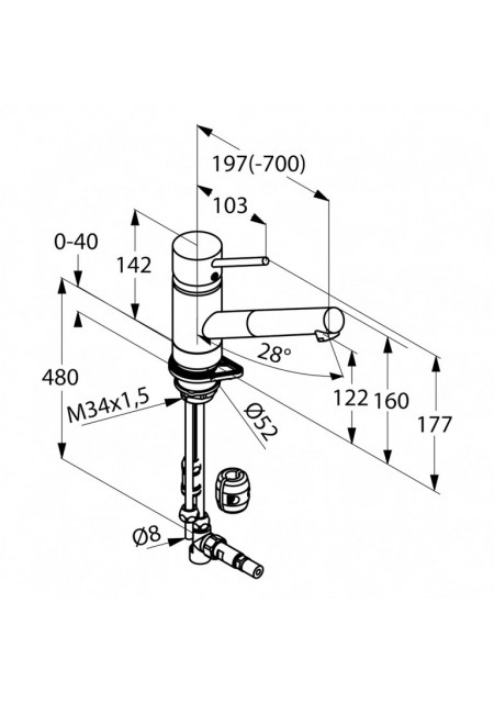 Baterie de bucatarie cu monocomanda, cu diametrul nominal de 8 mm