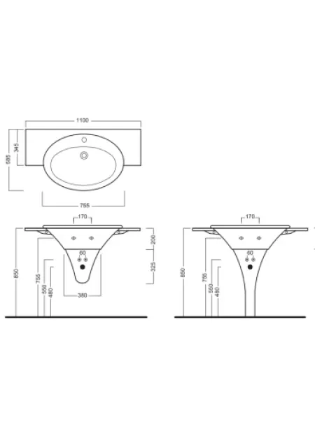 SCULTURE, ALB, LAVOAR 110CM CU BLAT SI SET FIXARE, YR3801
