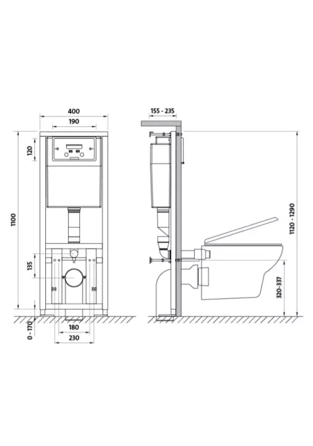 Cadrul pe care este pozitionat rezervorul are inaltimea de 110 cm si latimea de 40 cm. Rezervorul nu este prevazut cu clapeta de actionare, aceasta se achizitioneaza separat in functie de preferinte culoare, forme, etc