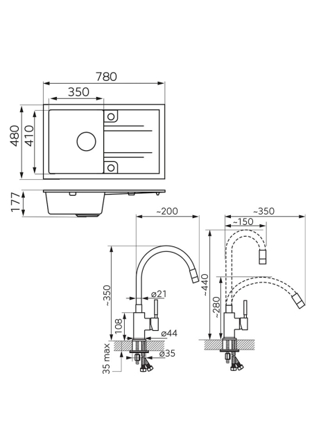 inaltime reglabila a pipei: 28 cm - 44 cm