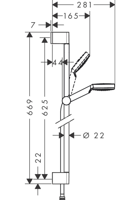 SET DUS CROMETTA 100, 1 JET, BARA 65 CM, ALB-CROM