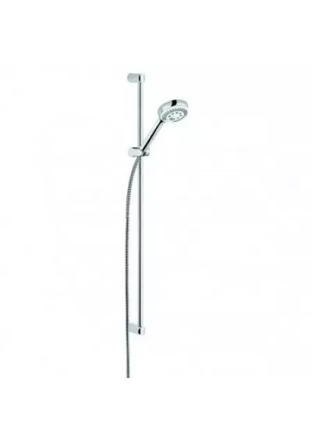 suport culisant reglabil orizontal şi vertical, L = 900 mm, furtun de dus Kludi Logoflex, infoliat in plastic G 1/2xG 1/2x1600 mm, cu piuliţe conice, cu efect metallic, cu set fixare. Tehnologia anti-calcar incorporata in duzele dusului permit un jet de apa reconfortant si igienic, chiar si in conditiile de apa dura. Finisaj crom. Garantie 24 luni. Produs fabricat de Kludi.