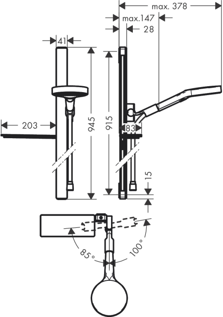 SET DUS RAINFINITY 130, 3 JETURI, CU BARA DUS 90CM SI SAPUNIERA, CROM