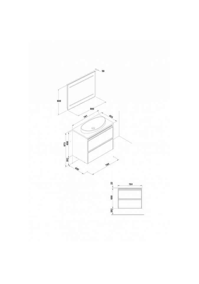 SET MOBILIER KLEA 78.5X45.5 ALB+ LAVOAR KLEA 65X35+OGLINDA KLEA 80X60