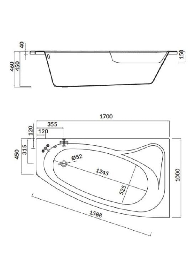 - cadă de baie acrilică asimetrică