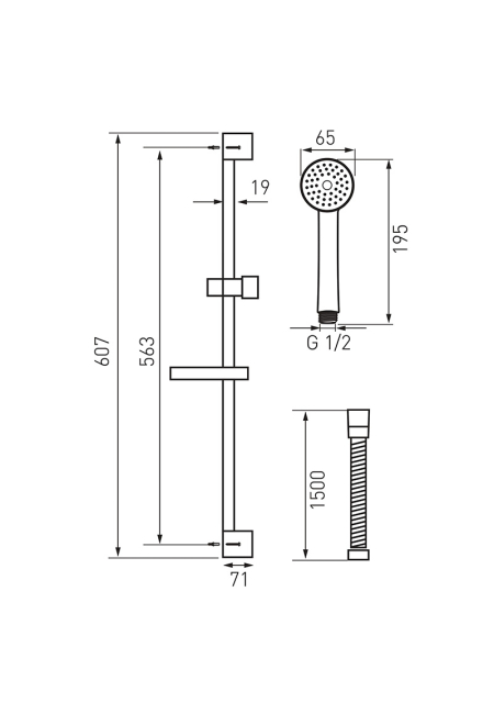 SIMPLA, CROM, SET DUS CU BARA DE 56CM, CAP DE DUS 1 JET, PORTSAPUN, N120