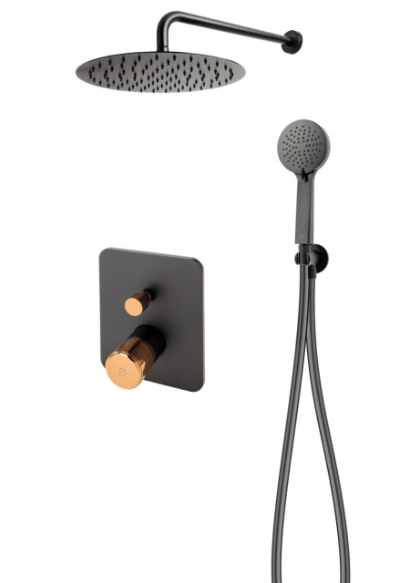 SISTEM DUS 6 IN 1 ARDESIA, BATERIE INCASTRATA 2 IESIRI, CAP DUS FIX, BRAT, PARA, FURTUN SI RACORD PENTRU BATERIE INCASTRATA, NEGRU-ROZ AURIU