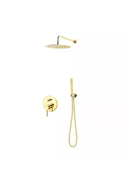 SISTEM DUS 6 IN 1 FLUSSO, BATERIE INCASTRATA 2 IESIRI, CAP DUS FIX, BRAT, PARA, FURTUN SI RACORD PENTRU BATERIE INCASTRATA, AURIU LUCIOS