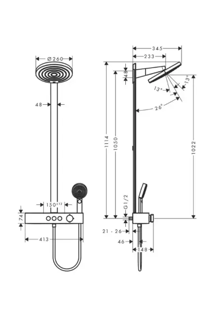 termostatul este prevăzut cu butoane de duș de mână, PowderRain, PowderRain Intense