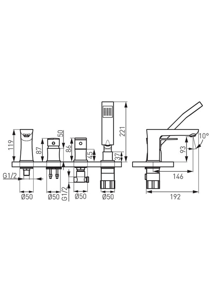 SQUARE, CROM, BATERIE CU MONTAJ PE CADA, CU 4 GAURI, BAQ11A