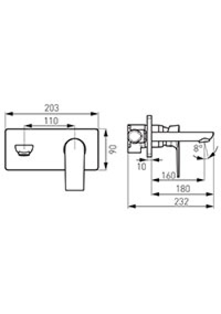 SQUARE, CROM, BATERIE LAVOAR CU MONTAJ PE PERETE, PIPA 22CM, BAQ3PA22