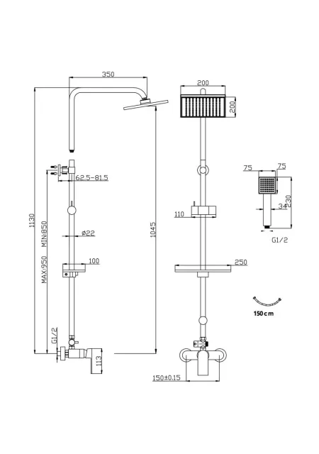 Dimensiune cap dus: 200x200 mm;
