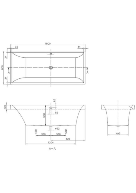 - dimensiunile fundului căzii de baie: 120,4 x 49,5 cm