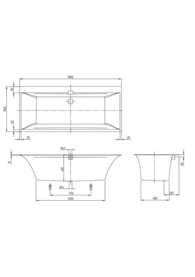 - capacitatea căzii (cu 1 persoană): 180 litri