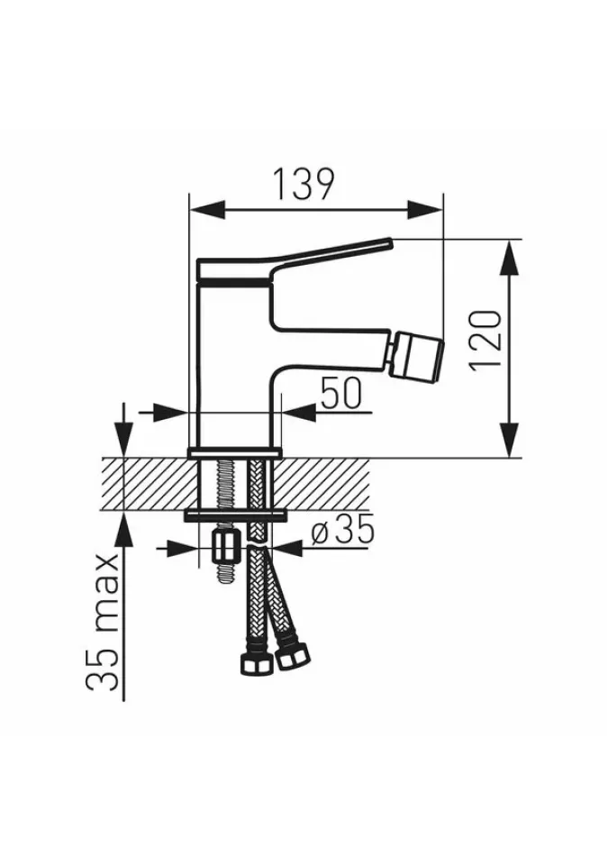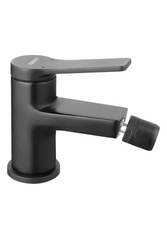 Baterie Bideu negru mat Ferro Stratos.Cartus ceramic. Montare cu un singur orificiu. Regulator de debit M24x1. Racord flexibil D3/8 - M10x1. Finisaj negru