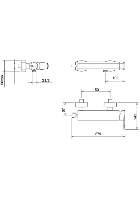STUDIO, CROM, BATERIE DUS CU MONTAJ PE PERETE, FARA ACCESORII, 31060/1.0