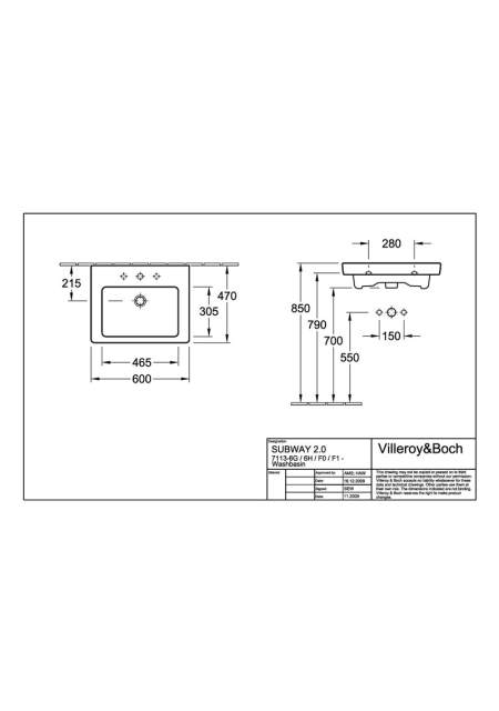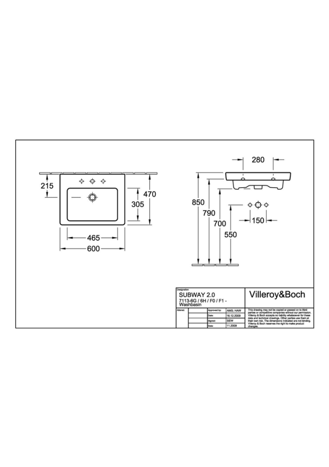 SUBWAY 2.0, ALB, LAVOAR PT MOBILIER, 600 X 470 MM, 7113F001