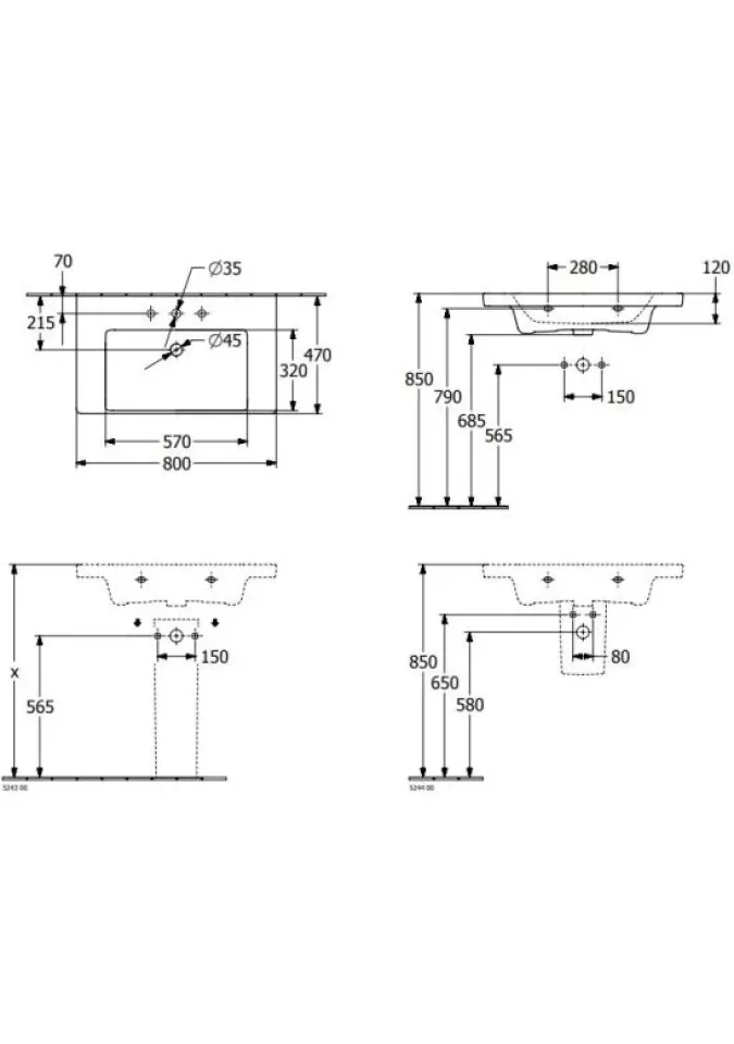 -cu o gaură pentru robinet încastrată (gaură centrală)