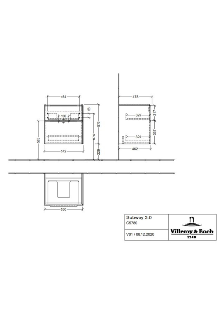 SUBWAY 3.0, BRILLIANT WHITE, MOBILIER SUSPENDAT PENTRU LAVOAR 57.2X47.8X57.6CM, CU 2 SERTARE, MANER GLOSSY ALUMINIUM, C57800VE