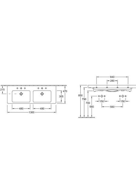 - pregătit pentru două robinete cu 3 găuri cu găuri centrale decupabile