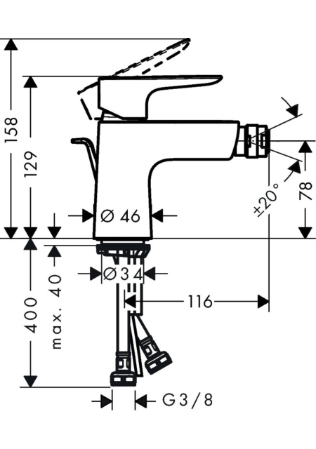 TALIS E, ALB MAT, BATERIE BIDEU CU VENTIL POP-UP, 71720700