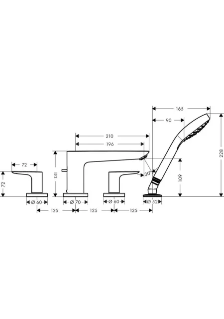 TALIS E, BRUSHED BRONZ, BATERIE CU MONTAJ PE CADA 4 GAURI, 71748140