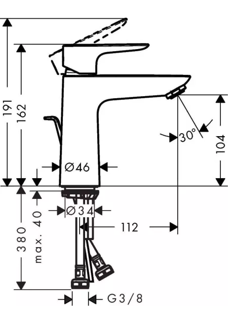 TALIS E, NEGRU MAT, BATERIE LAVOAR 110 COOL START CU VENTIL POP-UP, 71713670