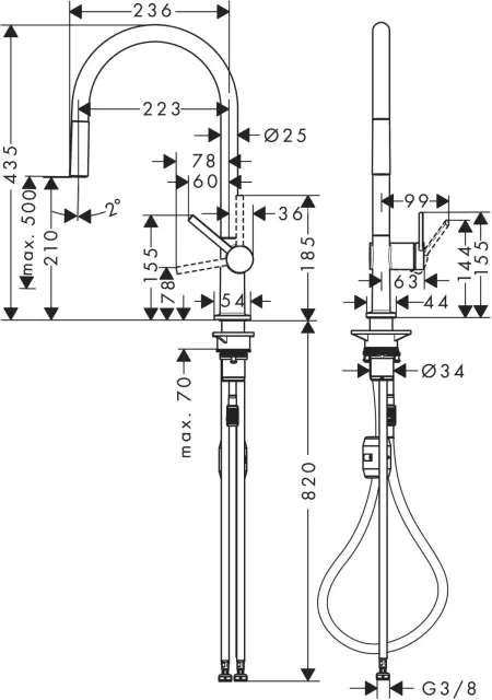 TALIS M54, NEGRU MAT, BATERIE BUCATARIE 210, CU PIPA EXTRACTIBILA, 1 JET, 72802670
