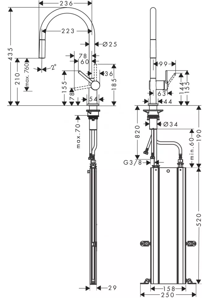 TALIS M54, NEGRU MAT, BATERIE BUCATARIE 210, CU PIPA EXTRACTIBILA, 1 JET, SBOX, 72803670