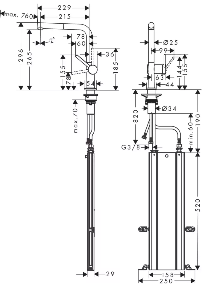 TALIS M54, NEGRU MAT, BATERIE BUCATARIE 270, PIPA EXTRACTIBILA, 1 JET, SBOX, 72809670