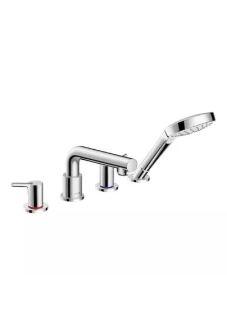 Set baterie pe cada cu 4 orificii, proiectie 200 mm, debitul pentru umplere cada este de 19 l / min, iar pentru dusul de mana este de 17 l/min. Beneficiaza de suport de dus integrat si valve ceramica cald/rece 90 grade. Presiunea minima este de 1 bar, iar presiunea maxima este de 10 bar. Dimensiunea conexiunii este DN15. lungimea maxima de extractie a dusului este de 1.10 m. Necesita set de baza pentru montaj cu 4 orificii (13444180), care se comanda separat. Garantie 60 de luni. Produs fabricat de Hansgrohe.