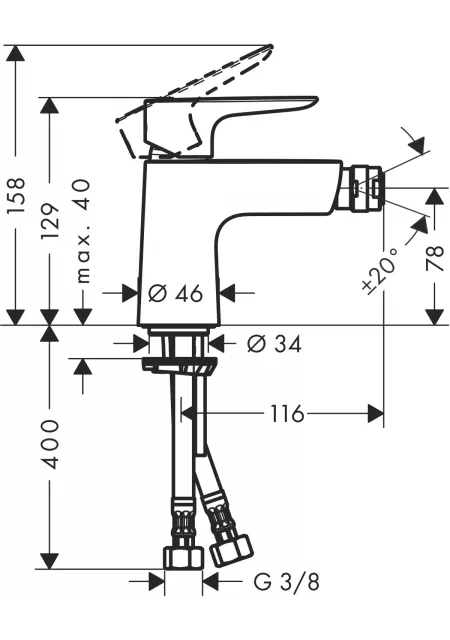 TALIS SELECT E, CROM, BATERIE BIDEU CU VENTIL CLICK-CLACK, 71721000