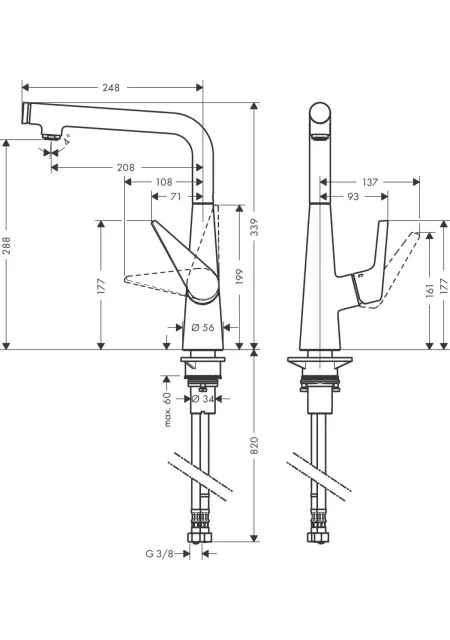 TALIS SELECT M51, CROM, BATERIE BUCATARIE 300, 1 JET, 72820000