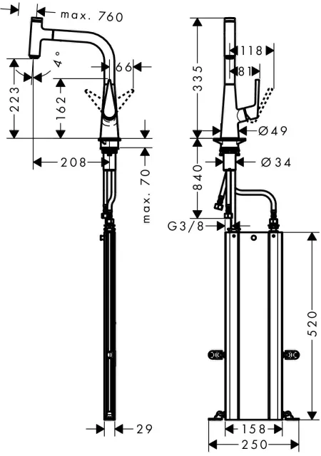 TALIS SELECT M51, CROM, BATERIE BUCATARIE, CU PARA EXTRACTIBILA, 1 JET, 73852000