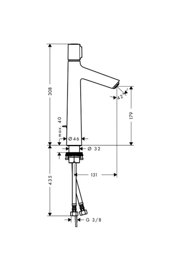 Bateria lavoar inalta, ComfortZone 190, proiectie 131 mm, pulverizare normala cu un debit de 5 l / min, cartuș cu control al temperaturii. Limitare temperatură reglabilă, cu set de deseuri pop-up G 1¼, adecvate pentru încălzitoarele de apă cu debit continuu. Dimensiunea conexiunii este DN15.