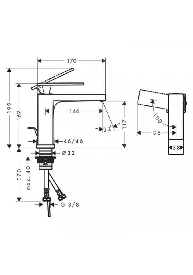 TECTURIS E, CROM, BATERIE DE LAVOAR CU VENTIL POP-UP, 73014000