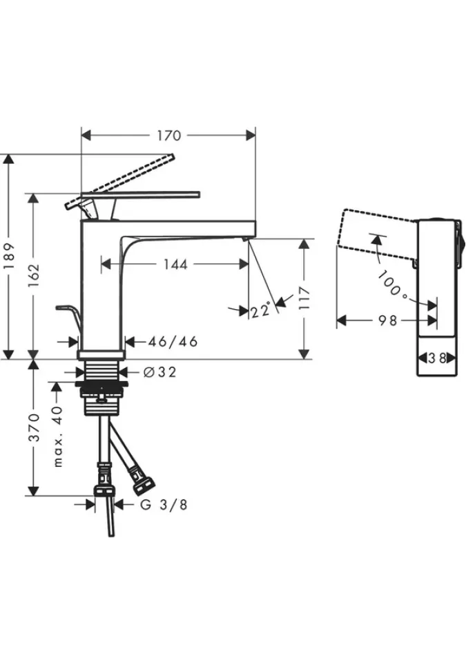 TECTURIS E, NEGRU MAT, BATERIE DE LAVOAR CU VENTIL POP-UP, 73014670