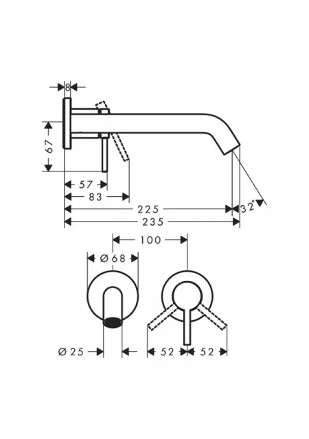 se compune din: baterie monocomandă lavoar pentru montaj ascuns montat pe perete, ventil