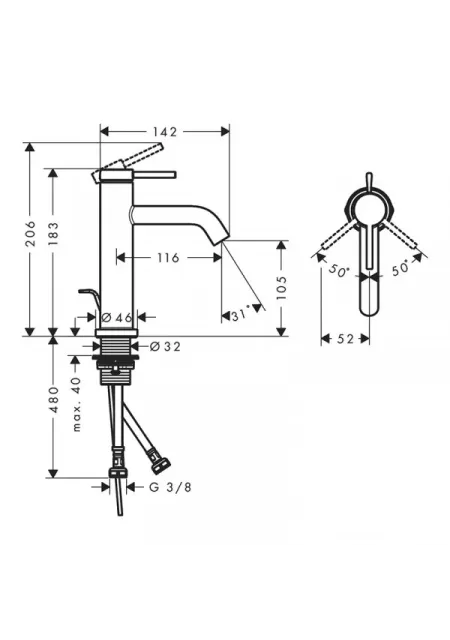 TECTURIS S, NEGRU MAT, BATERIE LAVOAR 110 ECOSMART+ CU VENTIL POP-UP, 73310670