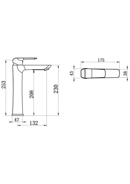 TINA, ALB-CROM, BATERIE INALTA PENTRU LAVOAR, H=25.3CM, CU VENTIL, 38503.1