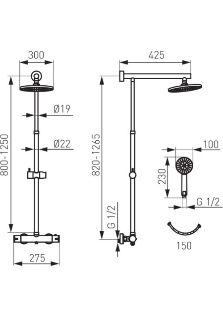 Set Trevi elegant și funcțional. Echipat cu un duș cu efect de ploaie cu un suport de perete distinctiv integrat în brațul său, un mixer de duș termostatic și un duș de mână cu 3 funcții, va fi perfect pentru orice baie modernă.