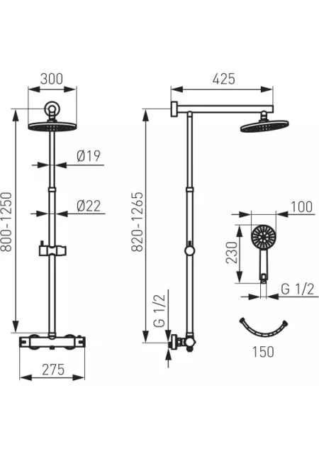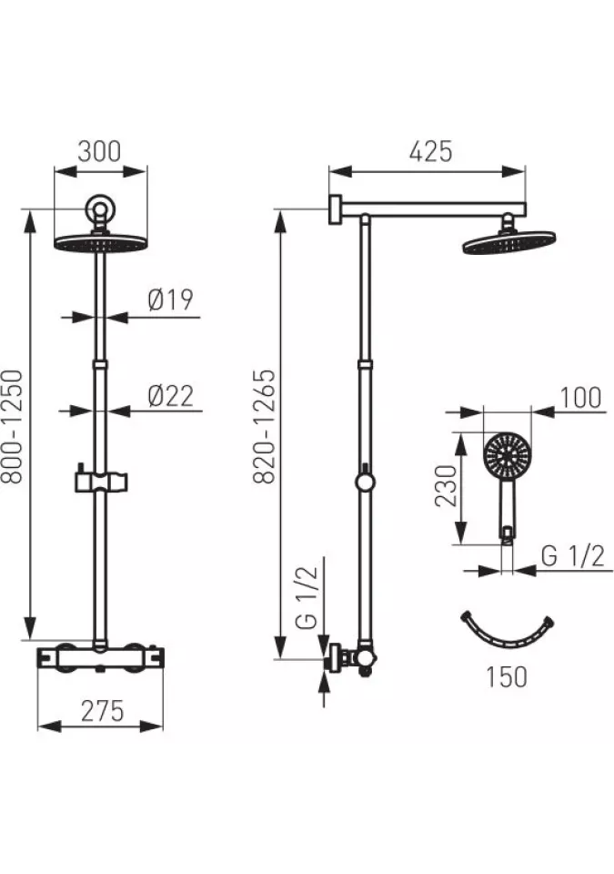 - bară de duș din metal cu lungime reglabilă de 80-125 cm