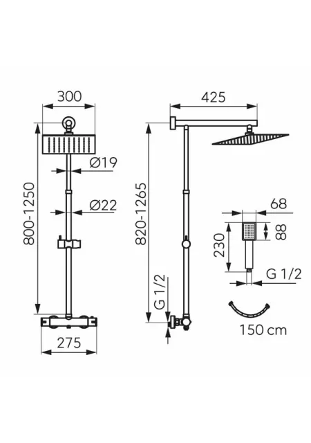 • cap dus SLIM din inox de 300x300 mm