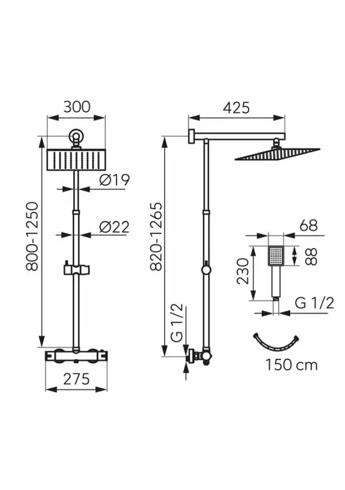 • distanta 150 ± 20 mm
