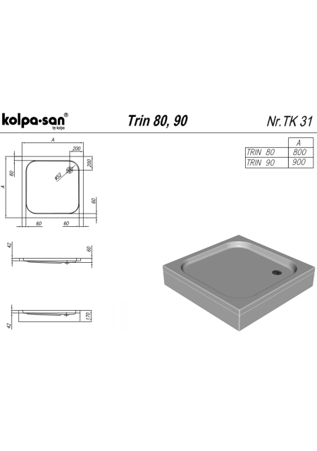 TRIN 90, ALB, CADITA DUS PATRATA PENTRU INZIDIRE, 90X90X6CM, ACRIL, 754810