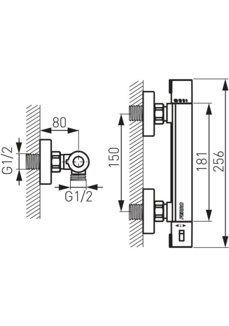 - racord excentric G1/2 distanța 150 ± 20 mm