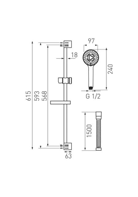 TUTTI, CROM, SET DUS CU BARA REGLABILA, CAP CU 3 JETURI, PORTSAPUN, N340