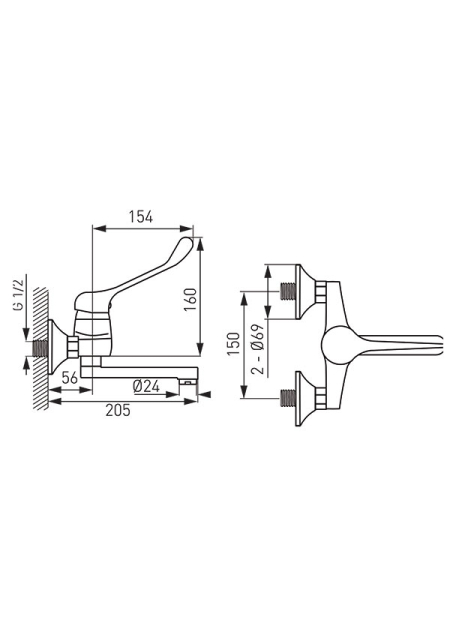 VASTO MEDICO, CROM, BATERIE LAVOAR CU MONTAJ PE PERETE, L = 16CM, BVAM3