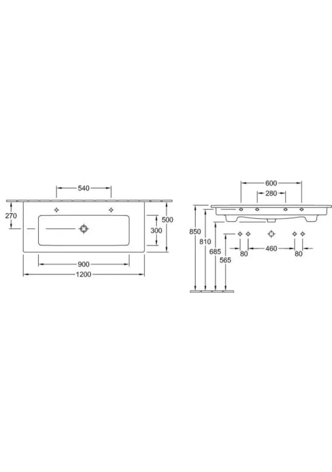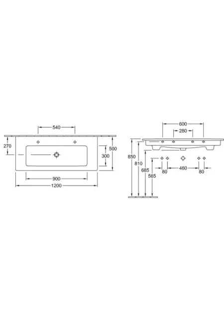 - pregătit pentru două robinete cu o singură gaură, cu două găuri de decupare